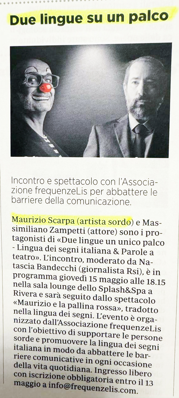 Incontro e spettacolo con l'Associazione frequenzeLis per abbattere le barriere della comunicazione